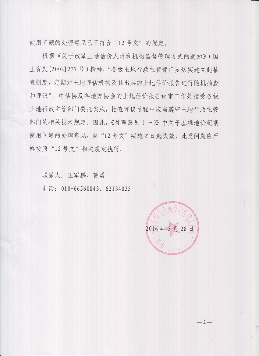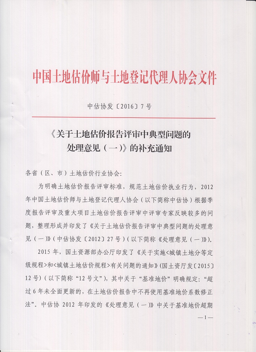 《关于土地估价报告评审中典型问题的处理意见(一)》的补充通知
