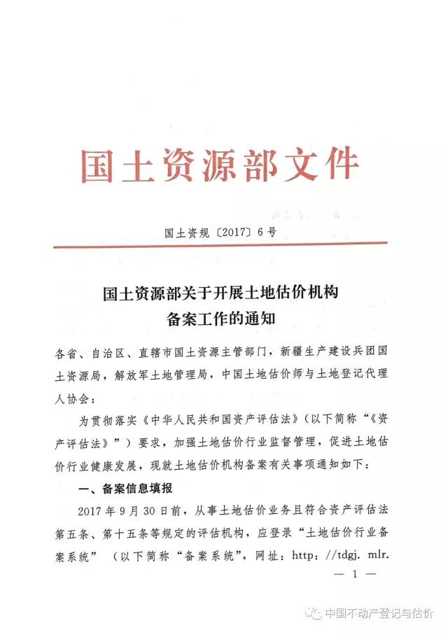 国土资源部关于开展土地估价机构备案工作的通知